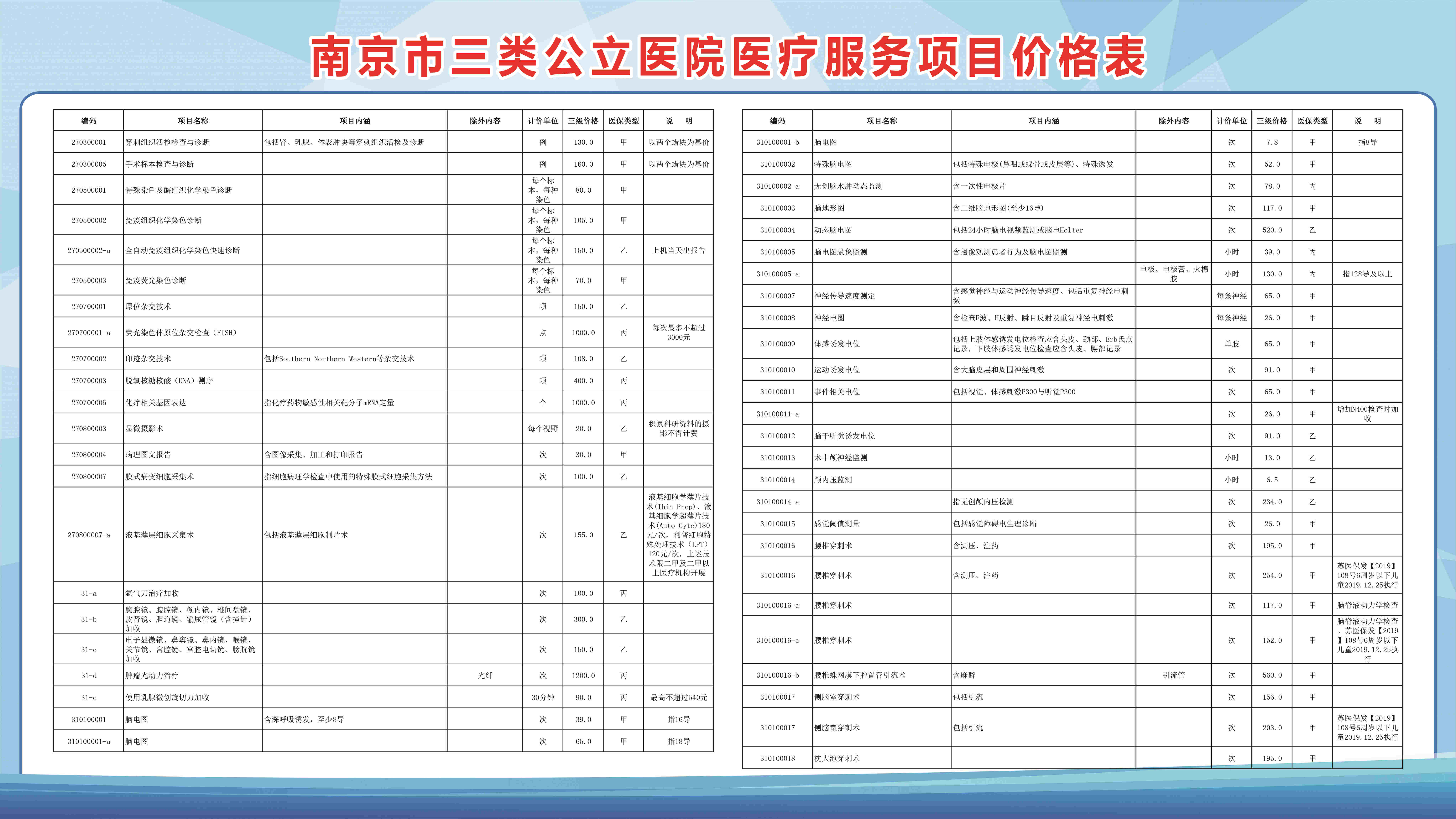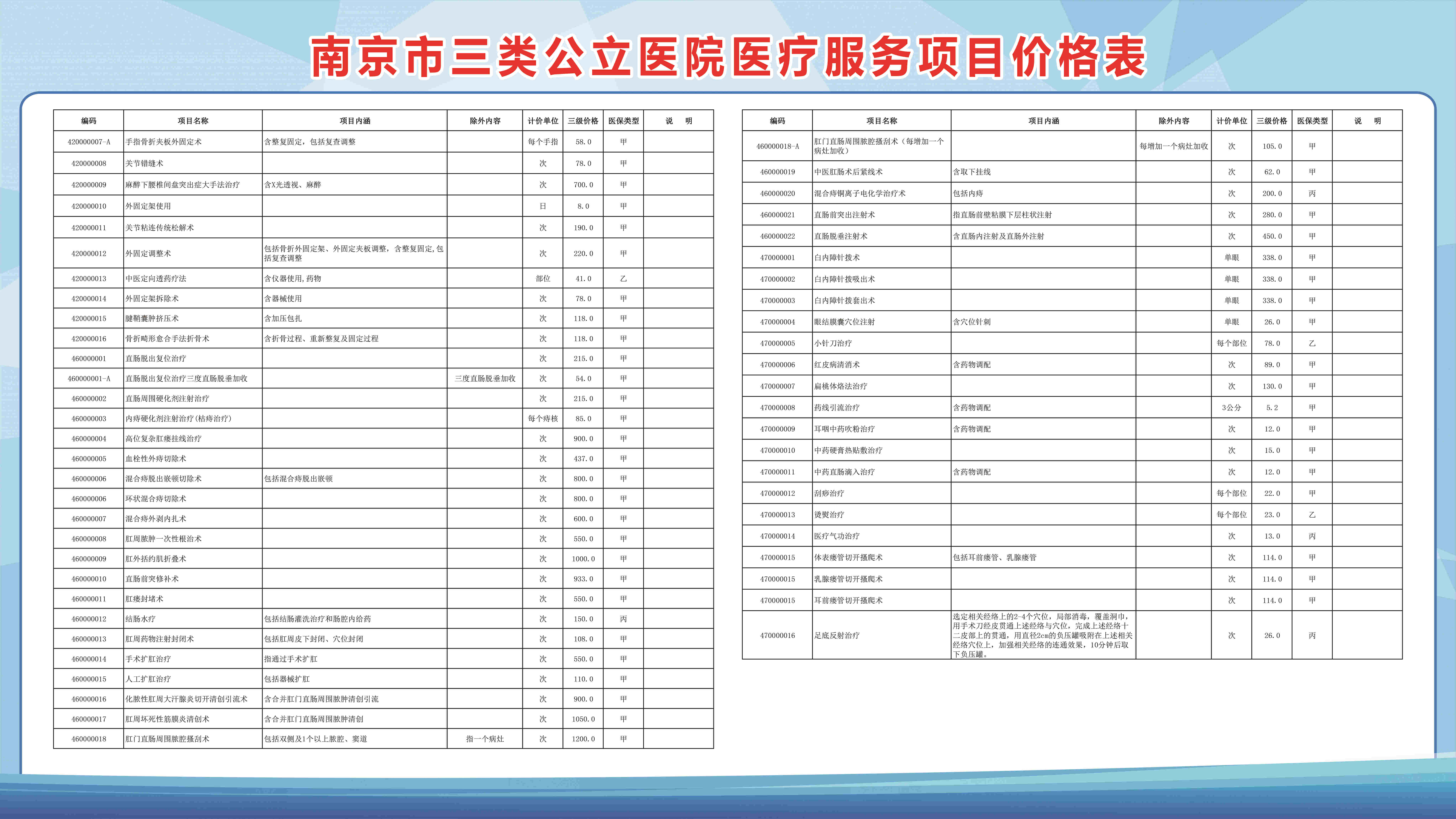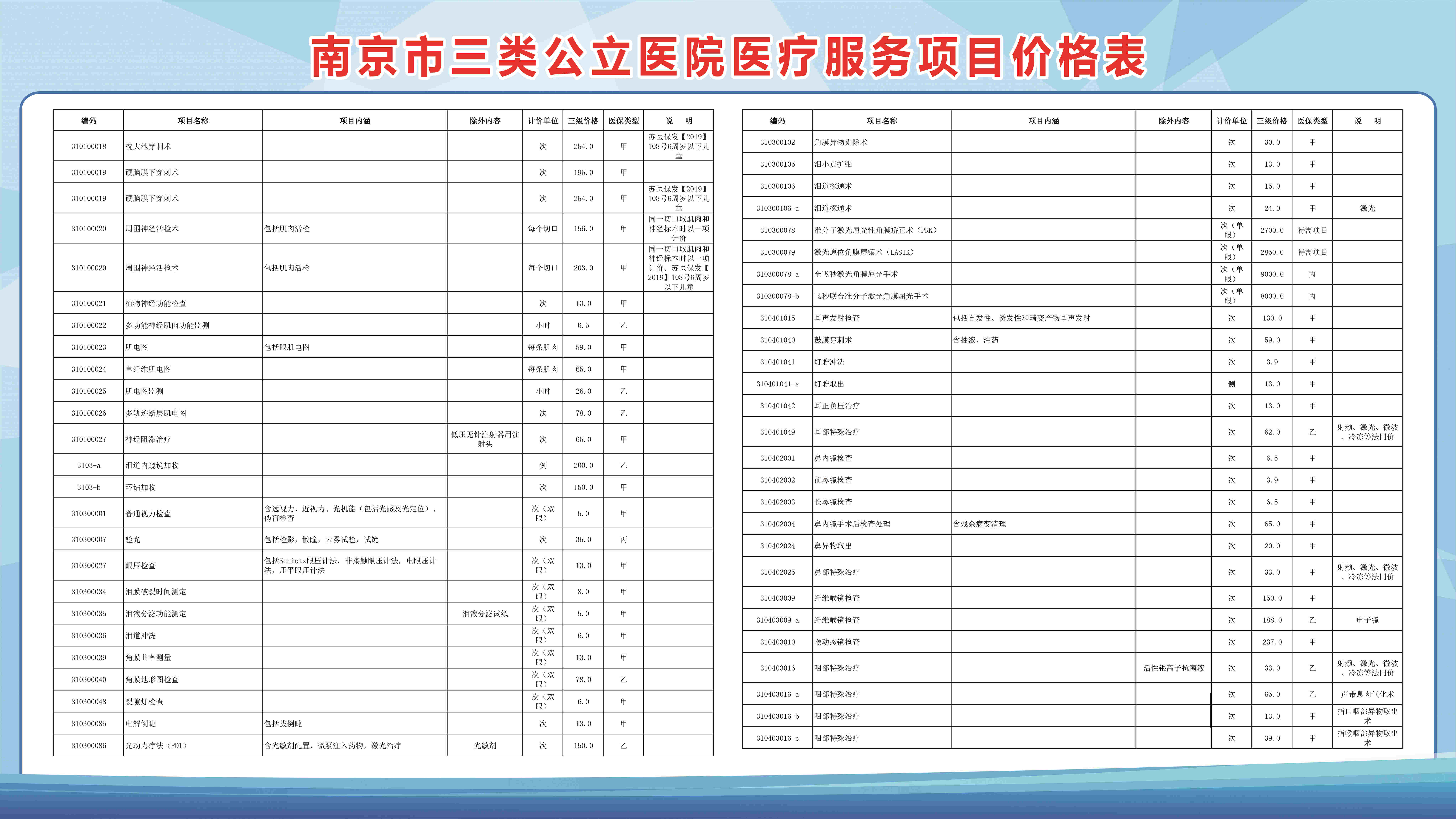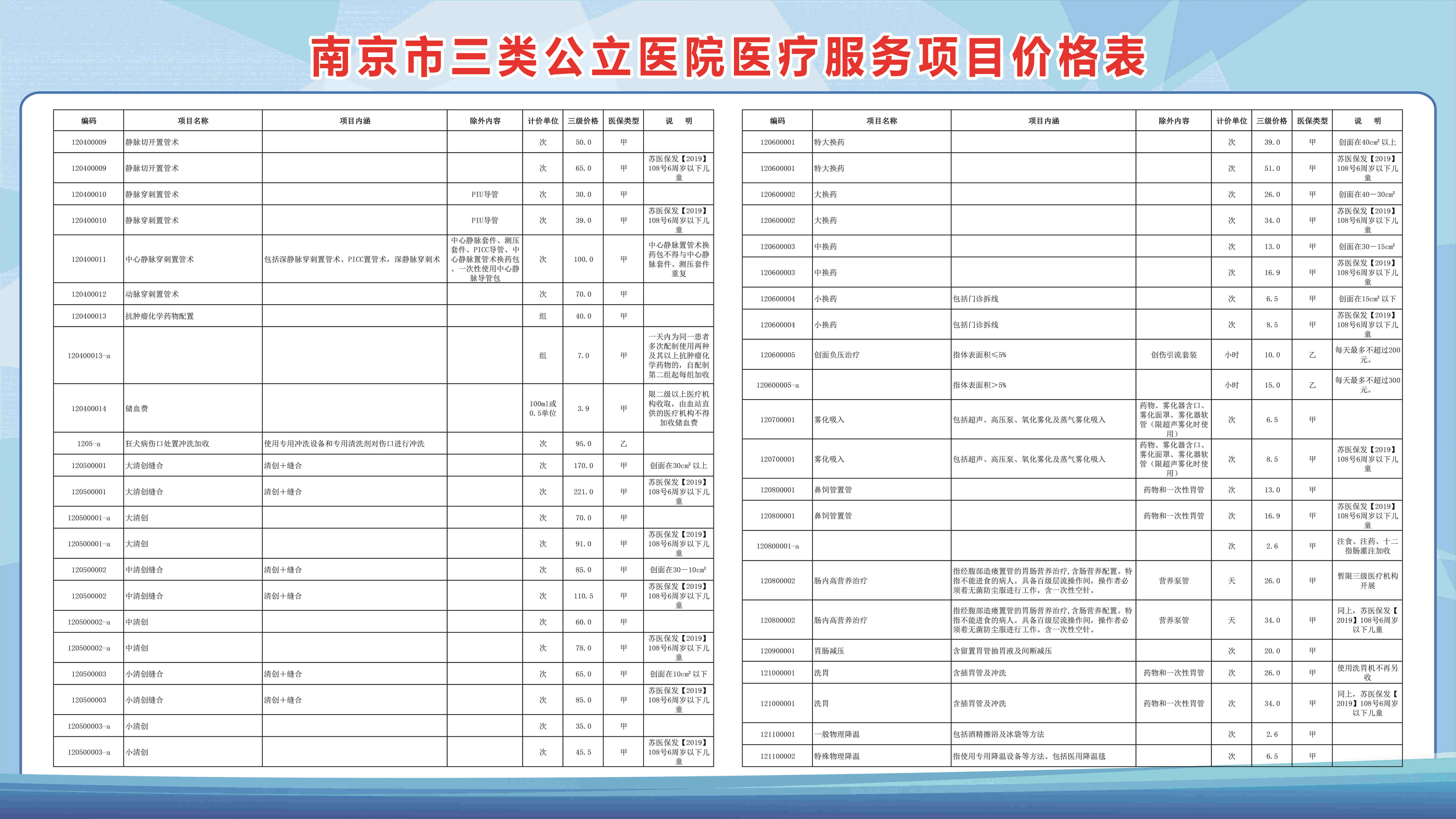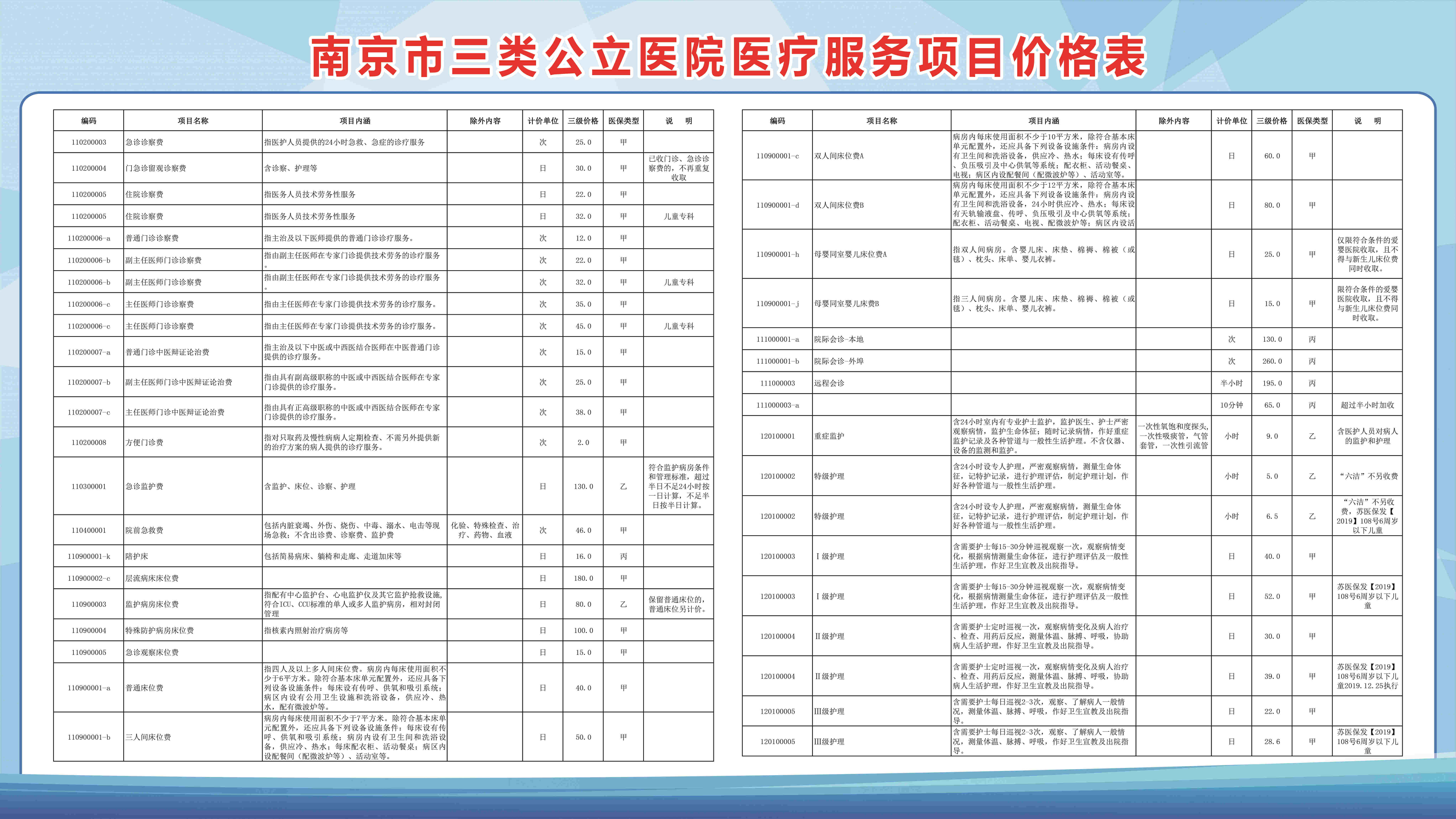 南京市三类公立医院医疗服务项目价格表(部分)