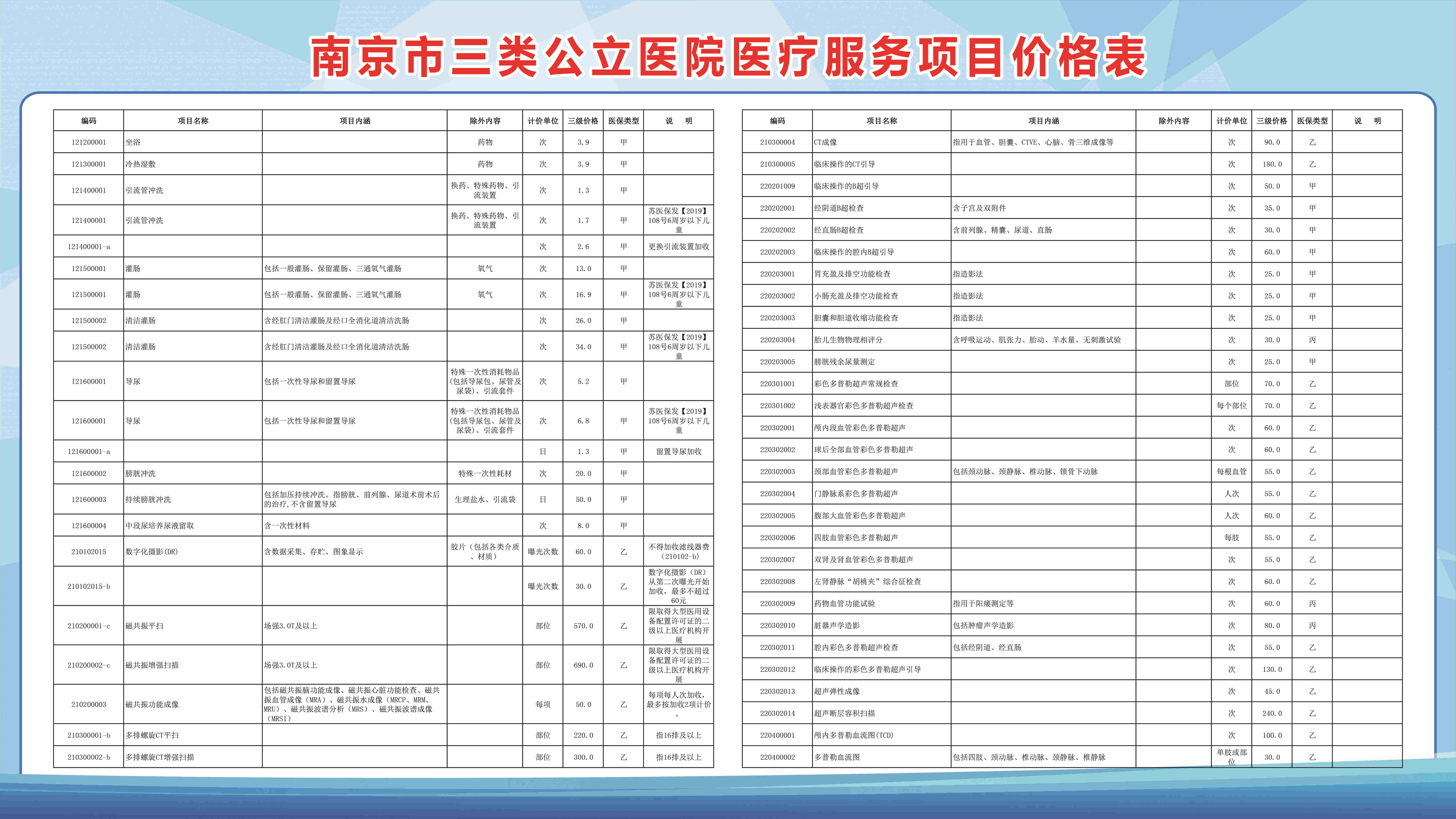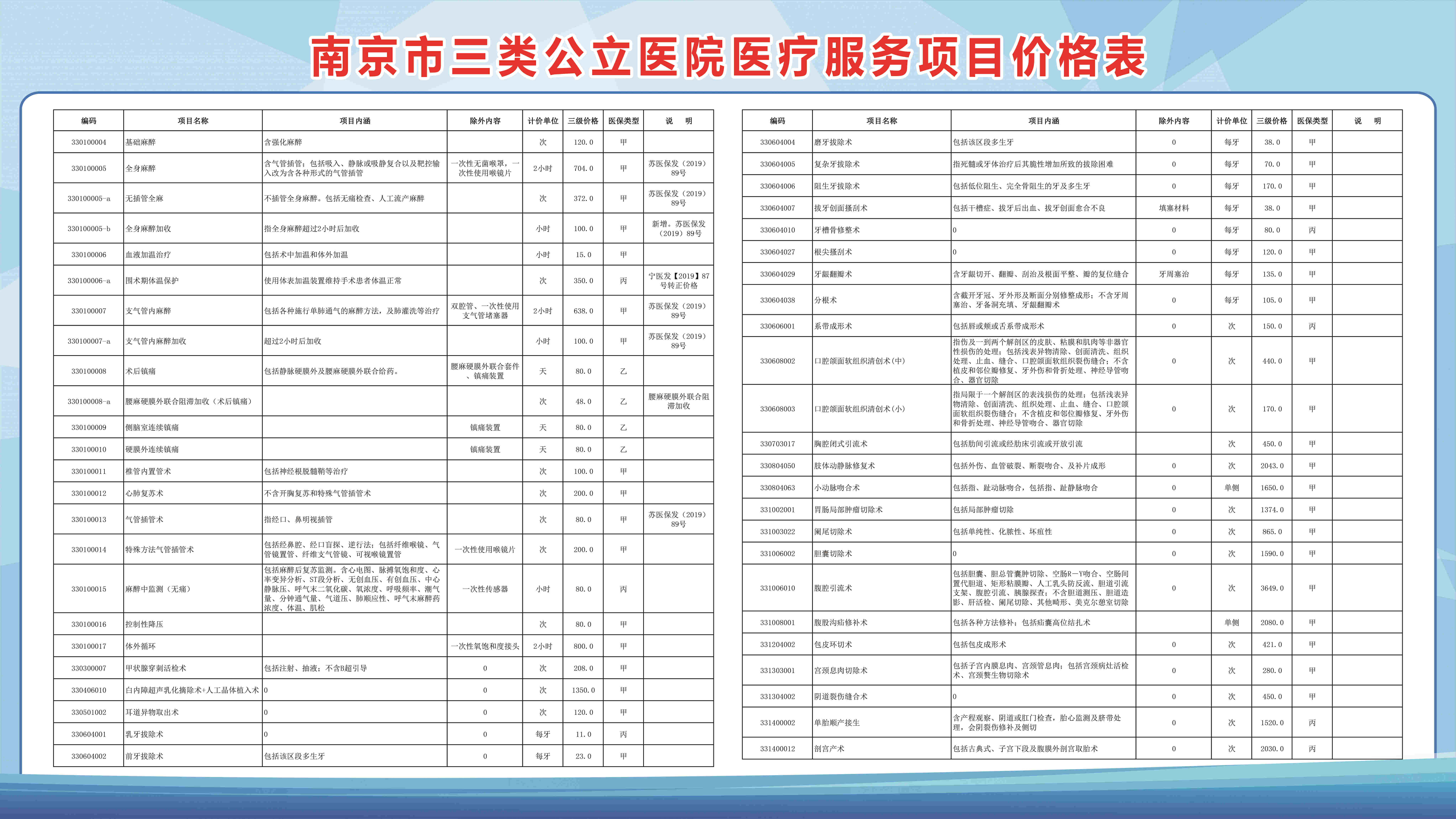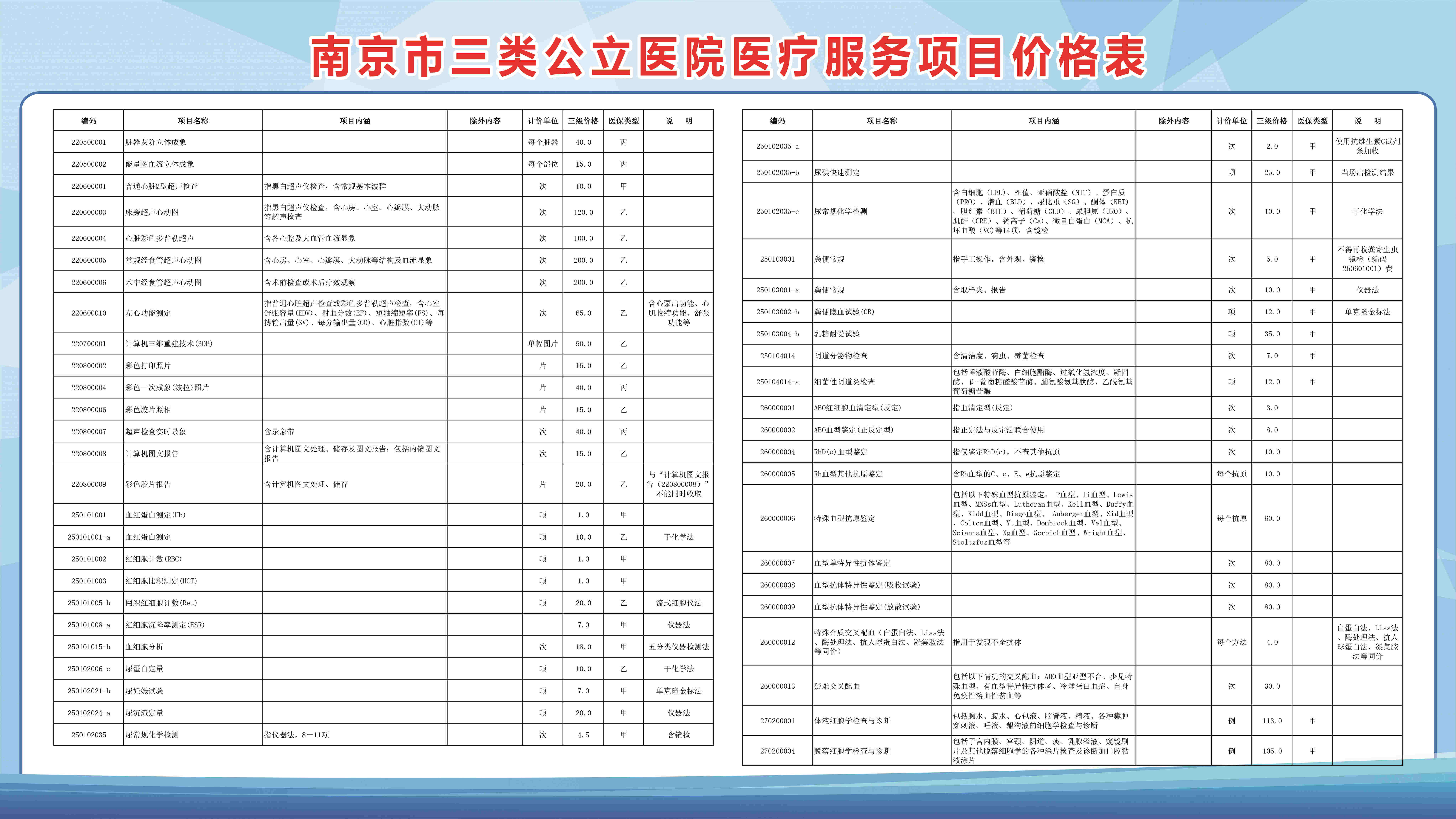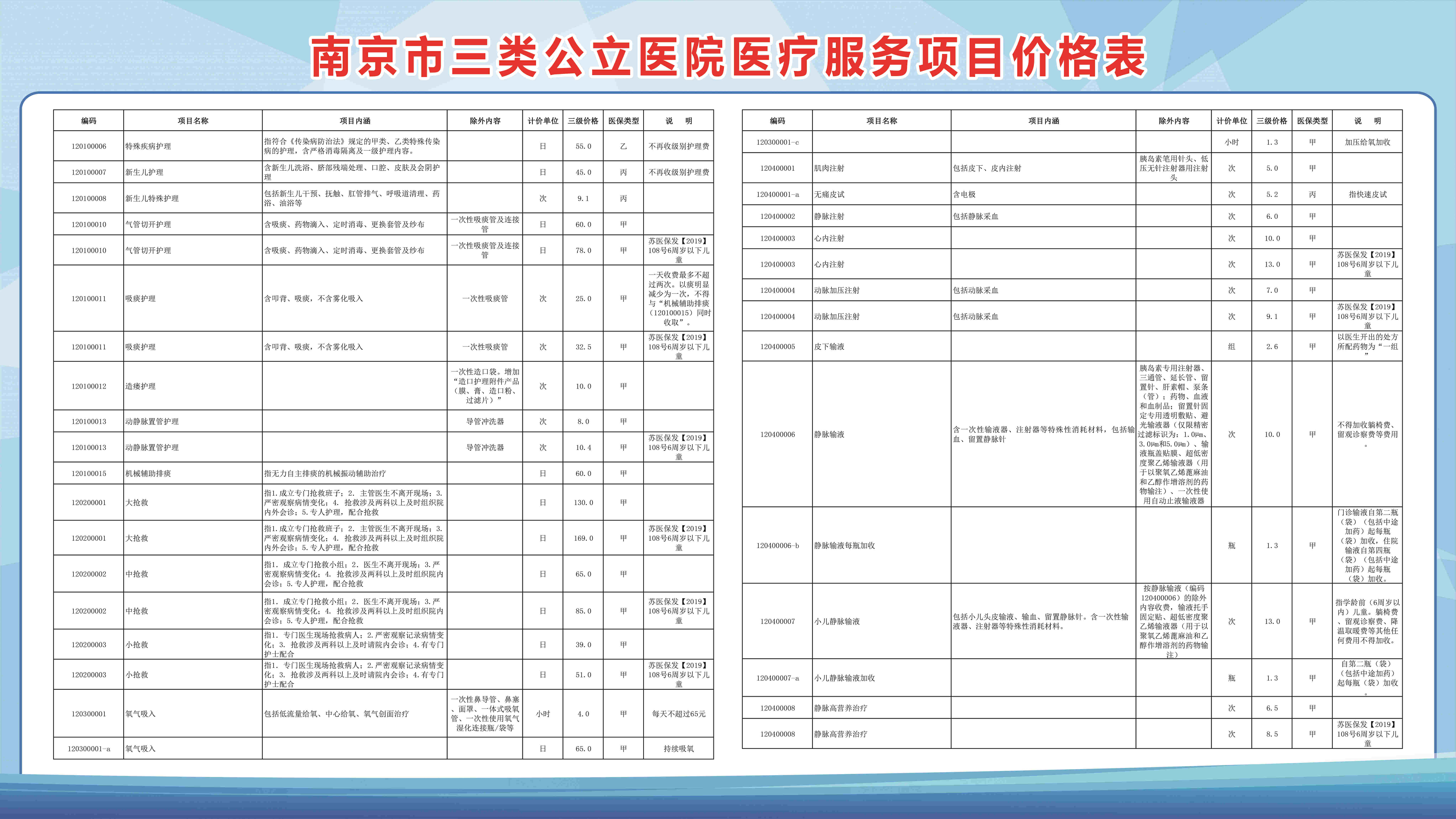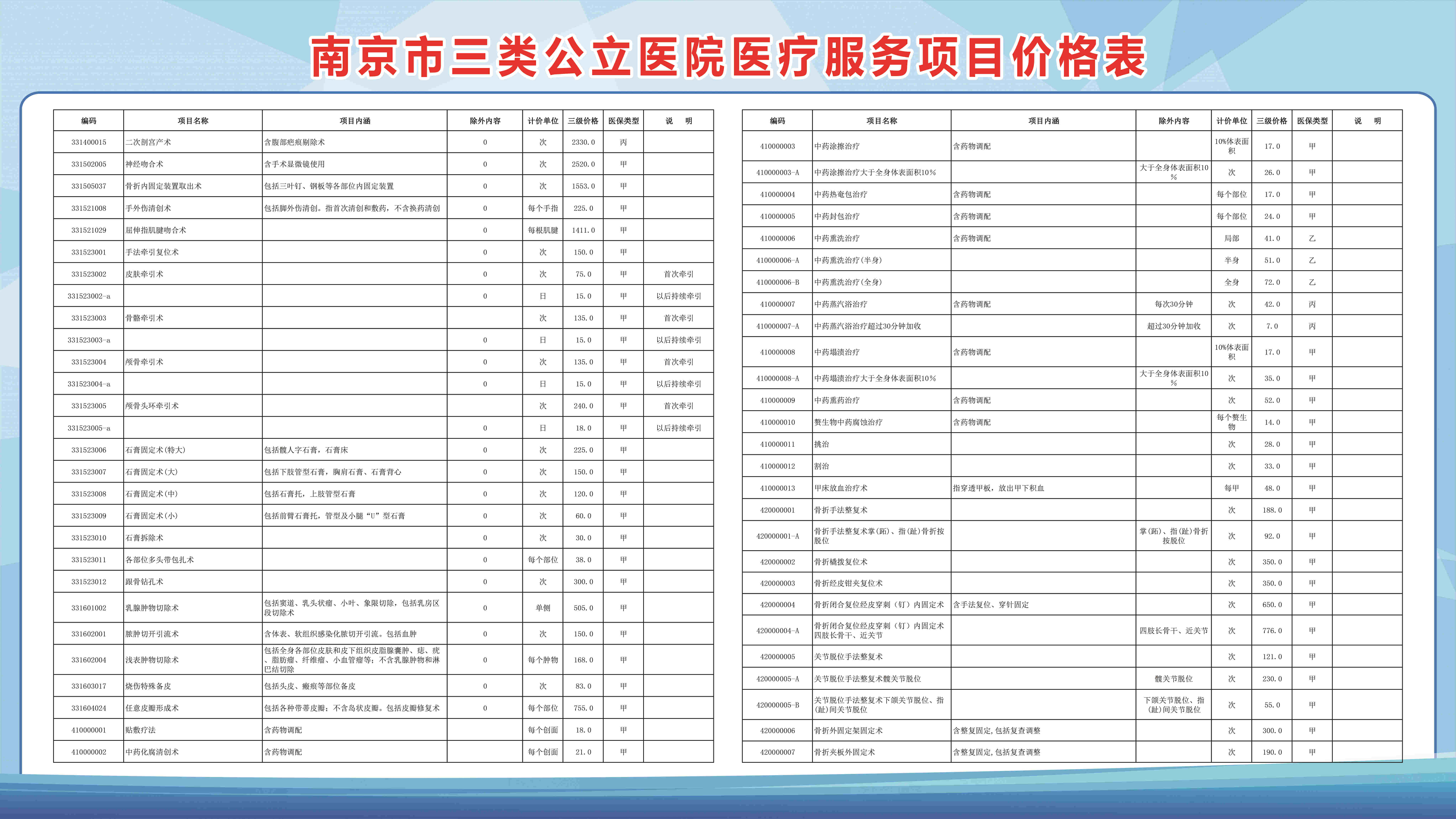 南京市三类公立医院医疗服务项目价格表(部分)