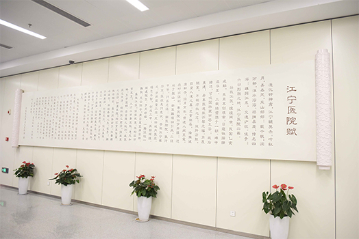 壮哉江医,煌煌两世。民国乙亥建始,先辈草创艰辛。日寇铁蹄肆虐华夏,三载经营隳于一朝。难中播迁,可叹国祚衰而苍生苦;战后重建,希冀医道振而黎元福。茅屋陋室,不辍疗救之志;披肝沥胆,弥坚人道之基。焚膏继晷,播撒健康种子;经月穷年,传递人间至爱。应时而谋划,县医院拓宇开疆;迁址于鼓山,新医路植桐引凤。二级甲等,行高志远;南医附院,敦行励业。医改先行先试,誉驰江宁模式;资质荣登三级,风标域内医苑。竭忠尽智,创成三甲;再期辉煌,新建院区。岁月峥嵘,一路征程一路歌;风云际会,满目葱茏满目新。