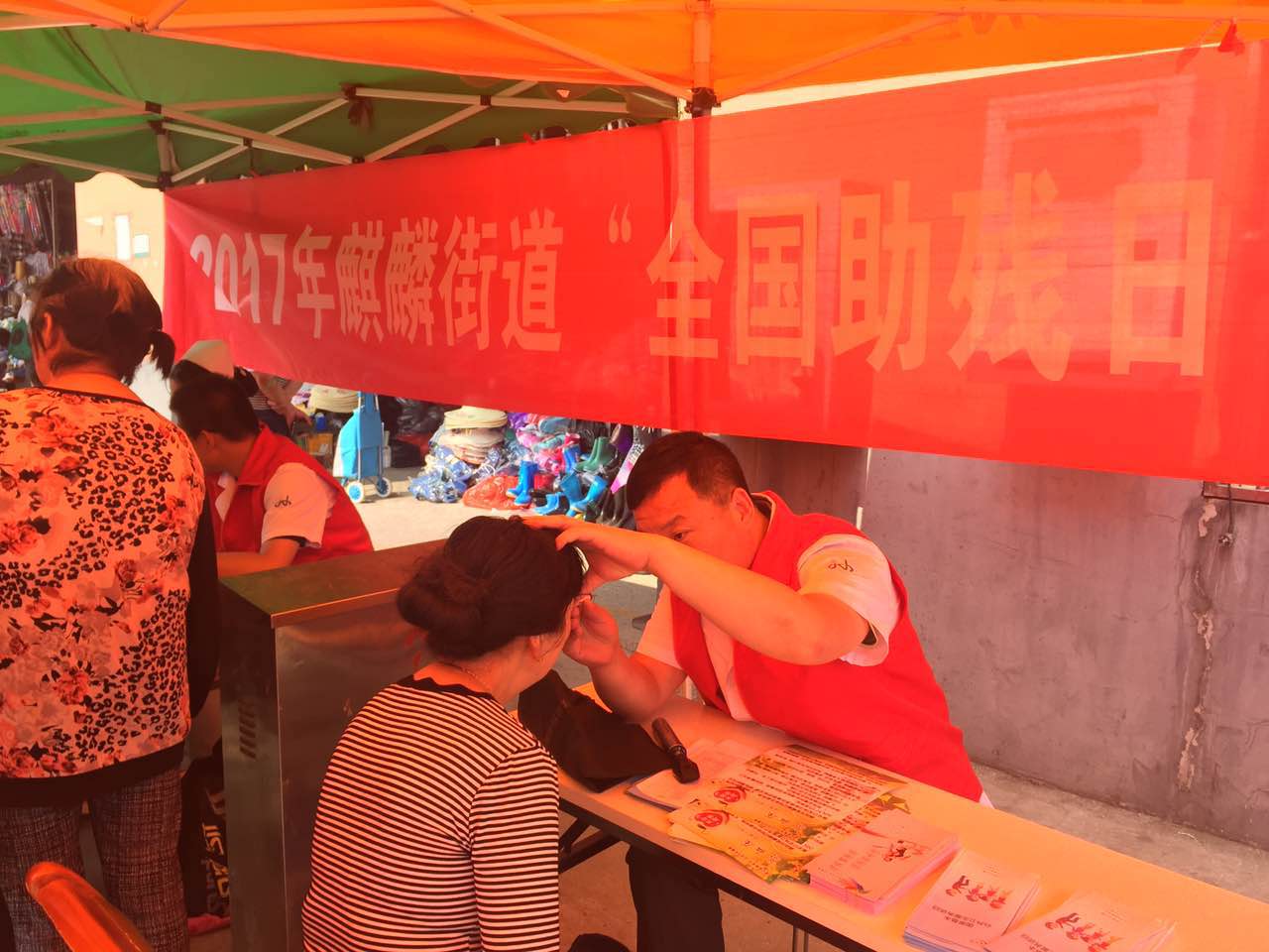 5月21日为第二十七个“全国助残日”,由区残联、市残联组织的关爱残疾人活动在麒麟街道开展。其中一项环节为熟女av 的志愿医疗队为残友们现场义诊。包括来自康复科的功能锻炼和指导;眼科和脑外科的检查诊疗;免费测量血压血糖、宣传健康生活方式等。以实际行动提升残友的身心健康,得到残友们的衷心感谢。