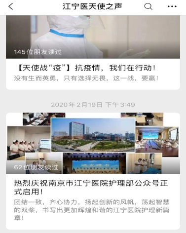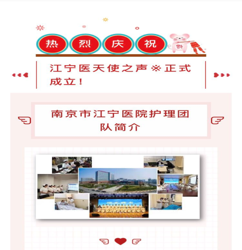 护理部于2月19日筹建并首次启用护理公众号“江宁医天使之声”。
