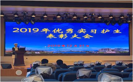 实习生学习工作热情,12月31日下午,护理部在教研保障楼四楼大会议室隆重召开“2019年度优秀护生表彰大会”。会议由护理部干事张曦月主持,护理部龚玲副主任、吴学薇副主任、教育培训科吴锐科长、各科室护士长及全体护理实习生共计100余人参加了会议。