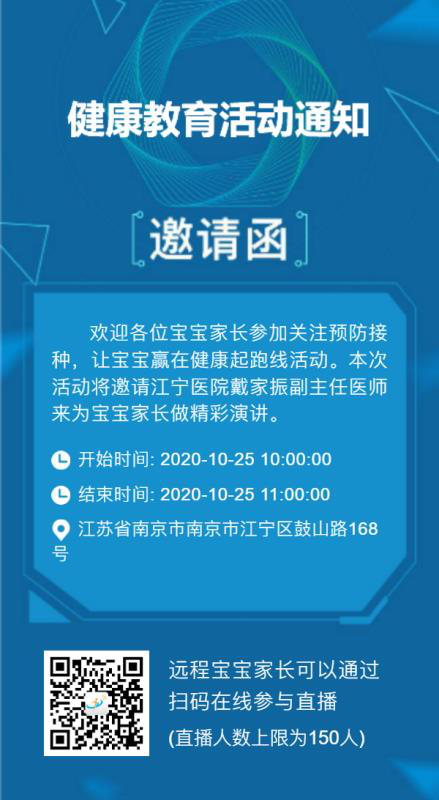 最新一期的“预防接种家长课堂(线上)”,将于2020年10月25日(周日)开课,本次家长课堂邀请熟女av 预防保健科戴家振副主任医师主讲,将与您分享为什么要接种疫苗、疫苗的分类、接种疫苗注意事项等预防接种相关知识,届时欢迎宝宝爸妈扫码参与在线听课。